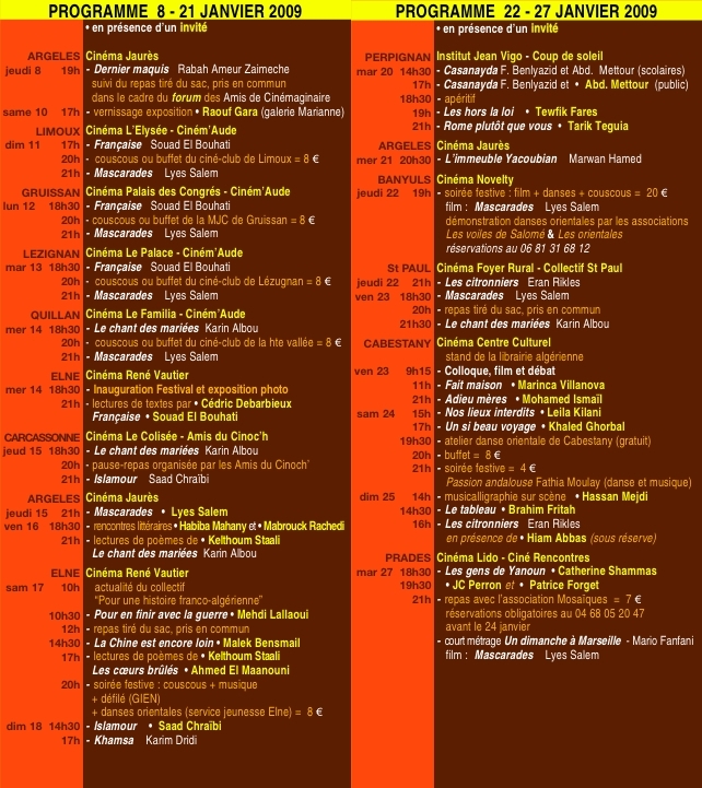 Pour recevoir le programme détaillé il faut adresser un e-mail à Ange Ibanez: a.f.ibanez@hotmail.com