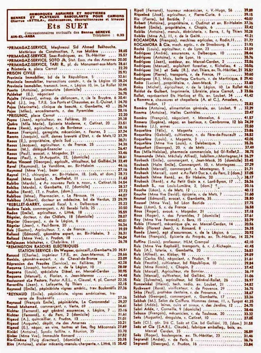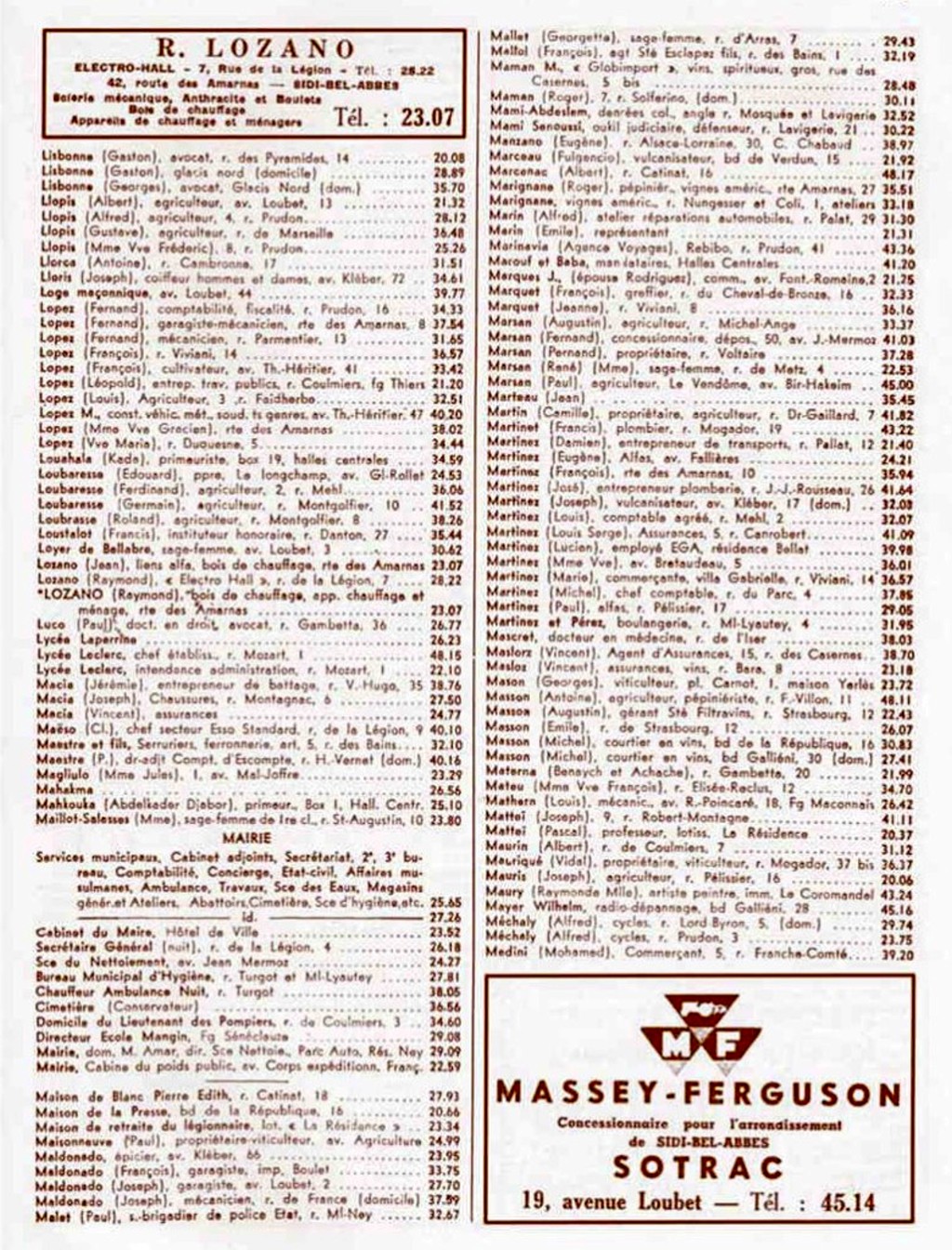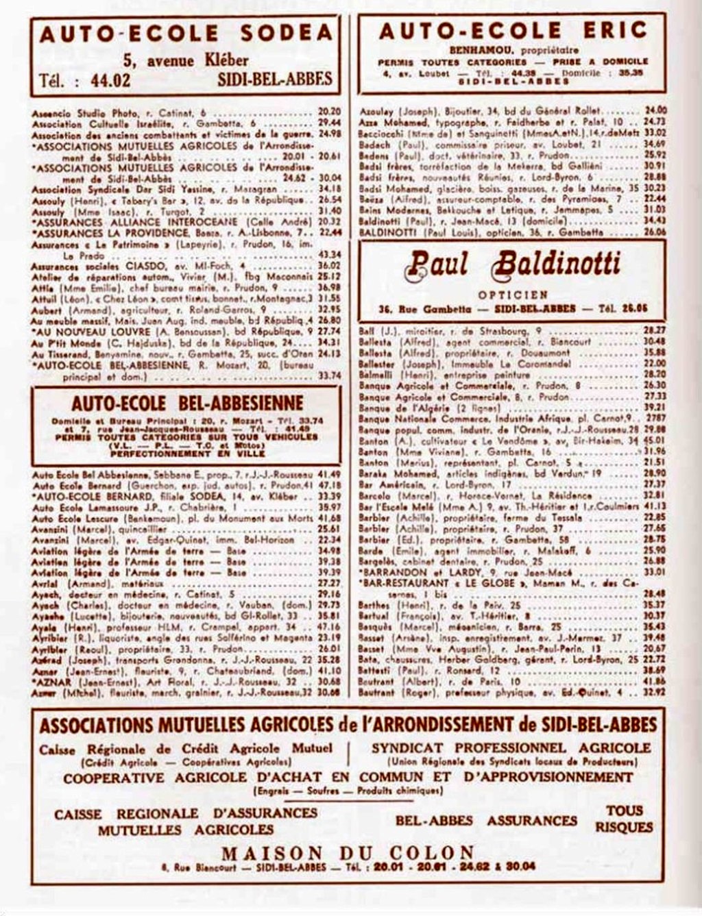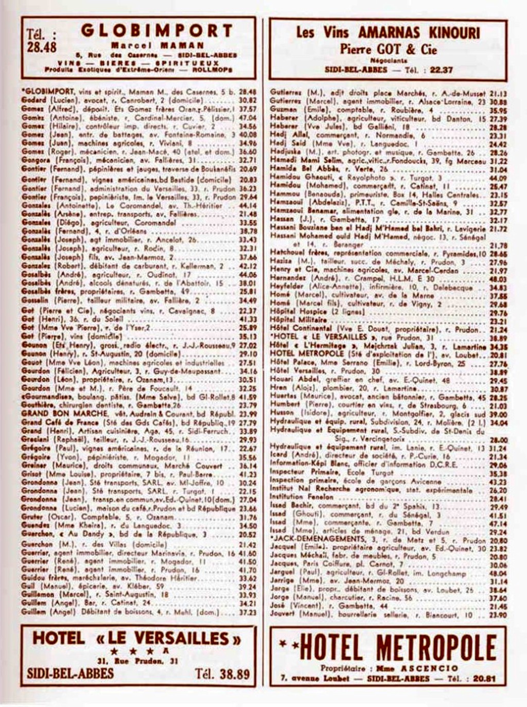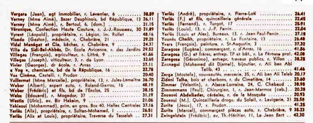 Cet annuaire proposé par un membre du site est une mine d'informations pour tous, ceux qui ont vécu à cette époque à Sidi Bel Abbès comme ceux qui n'ont fait qu'en entendre parler!