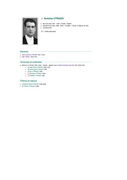 recherche historique,sur ma famille Utrago,Oran