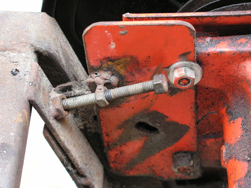 Pour tendre votre courroie, un écrou soudé sur le bâti de votre arbre de transmission, un bout de tige filetée à la dimension de l'écrou qui viendra en butée sur le châssis support moteur et cela sera suffisant comme tendeur de courroie. Sur la photo vous remarquerez un écrou d'un diamètre supérieur à la tige et qui est soudé sur le bâti moteur, il sert de guide à la tige filetée et guide aussi la hauteur de fixation de votre arbre de transmission.