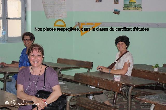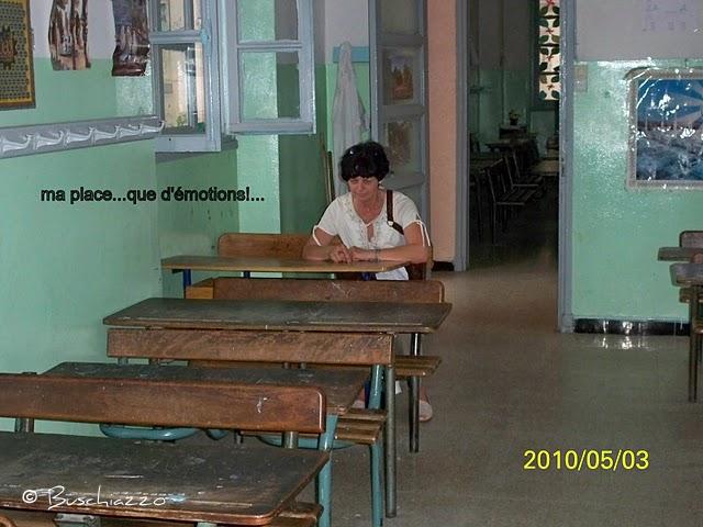 Sur la place, il y avait toujours la même petite épicerie dans laquelle nous achetions nos bonbons, des enfants jouaient, ils sont venus vers moi, je leur ai dit qu'enfant j'étais dans cette école, ils ont compris que je voulais rentrer, ils sont allés frapper à la porte, arrêtés par un policier qui nous escortait. La porte s'est ouverte, le policier a parlé en Arabe au gardien et ce dernier, nous a ouvert la porte... Une bouffée de bonheur m'a envahie, ma main s'est posée sur la poignée de la porte du CP à gauche, elle était fermé, peu importe, j'ai traversé ce petit couloir et me suis retrouvée dans la cour, j'en ai fait tout le tour, je m'arrêtais aux quatre coins, je suis allée vers la classe du CE1, elle était ouverte, je suis entrée, j'ai pris une photo, je n'avais pas assez de mes yeux pour tout regarder, puis je me suis dirigée vers l'escalier, je suis montée à toutes jambes, j'ai ouvert la classe du certificat d'études, je suis rentrée, j'ai fait le tour, j'étais une fourmi qui se faufilait dans les moindres recoins, je suis ressorti et j'ai crié à mon mari qui était encore en bas dans la cour: