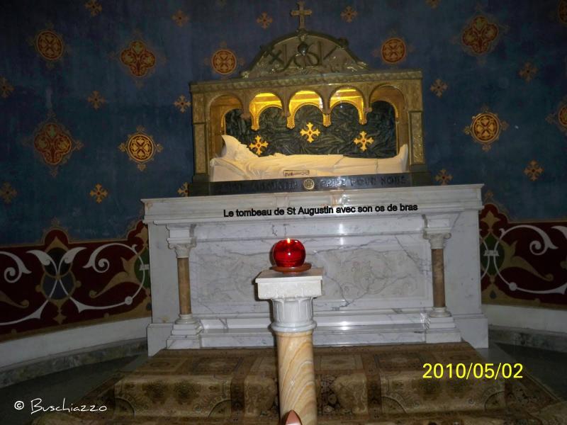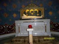 La vue de la Basilique de St Augustin, a doucement épongé mes yeux et apaisé mon coeur...le car nous a arrêtés aux pieds de la colline, mon Dieu, je vais monter là haut, je vais prendre le même chemin que celui de mon enfance, les marches sont les mêmes, je ne les ai même pas trouvé vieillies, j'ai commencé l'ascension et j'ai dit tout haut: "Un jour, pour une procession, je suis montée à genou jusqu'en haut avec maman!" et là j'ai de nouveau senti mon coeur battre, j'avais mal dans ma chaire, alors j'ai rejoins mon amie Thérèse qui était légèrement plus haut et je lui ai dit: "Attends Thérèse, viens, on va monter toutes les 2 ensembles tranquillement, il faut que nous réalisions où nous sommes, après ce sera trop tard!". Serrées l'une contre l'autre, dans le bonheur, nous avons gravi les marches de notre enfance. St Augustin nous attendait. Nous étions les premières à entrer dans l'enceinte de la Basilique après que le curé nous ait souhaité la bienvenue sur le parvis. Thérèse et moi nous sommes séparées pour mieux nous imprégner de ce saint environnement. Rien n'a changé...tout est comme avant, j'ai fait le tour, j'ai enfoui au fond de moi, chaque image qui s'offrait à moi, je ne voulais pas repartir comme il y a 48 ans...