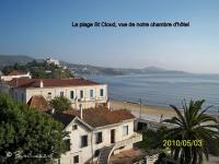 A ma descente du car, au bout de la rue, tout prêt, je voyais un petit bout de la plage St Cloud, j'avais hâte de déposer mes bagages et de pouvoir enfin piétiner ma terre. Nous avons eu du mal à trouver notre chambre, nous avons demandé à une femme de chambre qui se trouvait dans le couloir où était la chambre 330, elle nous a conduit, a ouvert la porte et quand j'ai vu que de la fenêtre on voyait toute la côte jusqu'au Cap de Garde, j'ai embrassé la dame et je l'ai serrée très fort en la remerciant, je voyais la mer c'était encore un beau cadeau.