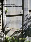 Il était toujours là avec les même étagères, disposées de la même manière, je venais souvent me cacher à l'intérieur pour manger le chocolat que maman cachait...,je me suis penchée par la fenêtre pour revoir la petite cour en bas, je suis rentrée dans la chambre de mes parents, les meubles étaient disposés de la même manière et l'armoire ressemblait étrangement à celle de mes parents, pour eux, c'était aussi la chambre des parents. Puis dans ma chambre il y avait la grand-mère malade, on lui a dit qui j'étais elle s'est levée pour m'embrasser, je me suis un peu attardée ici, j'ai revu le lit où ma soeur et moi dormions, la machine à coudre de maman, l'armoire que papa avait faite, le myrus, le balcon...comme mon coeur battait... Dans la salle de bain, le lavabo, n'avait jamais été changé, mais le carrelage avait été refait et une baignoire remplaçait le tub que papa avait installé, j'ai ouvert machinalement la fenêtre qui donnait sur le balcon, il me paraissait si petit, de là, j'ai regardé tout autour, à gauche, à droite, devant, au loin, tout, tout m'était si familier... Je leur ai montré une photo qui avait été prise sur ce même balcon lorsque j'avais 5 ans, puis je me suis retournée vers le mur et en même temps que je disais là, il y avait un chardonneret dans une cage, j'ai vu que le clou était encore là, tout rouillé, je l'ai touché pour laisser mon empreinte...