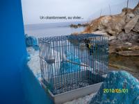 Nous sommes redescendus et nous nous sommes dirigés vers le "Vivier". Plus nous nous en approchions, plus je reconnaissais ses couleurs bleues, j'étais tout près de la porte de sortie au milieu du car, je n'ai pas attendu que l'on me dise de descendre, mais j'ai demandé si je pouvais aller sur le lieu même, on m'a dit que ce n'était plus comme avant, mais qu'importe, le vivier était toujours là lui aussi. J'ai traversé la petite passerelle, en dessous il y avait toujours les oursins, mais dans les viviers il n'y avaient plus les homards, il n'y avait plus les langoustes... mais je les voyais...et papa les voyait aussi... Attirée par des bruits, j'ai levé les yeux, mes amis étaient restés en haut et me faisaient des petits coucous de la main, c'est étrange, cela n'a duré que quelques secondes, mais ce n'était plus mes amis que je voyais mais toute ma famille comme avant... Puis j'ai été attirée par le chant d'un oiseau, c'était un chardonneret dans une cage, mon Dieu, nous avions le même ici sur notre balcon rue Condorcet, maman n'avait pas voulu le laisser, nous sommes partis en France avec une seule valise mais avec le chardonneret dans sa cage. Je me suis longtemps attardée sur ce petit oiseau, tout seul dans sa cage, j'ai mis un doigt entre les barreaux, il s'en est approché par petits sauts, m'a regardée et s'est remis à chanter en s'éloignant.