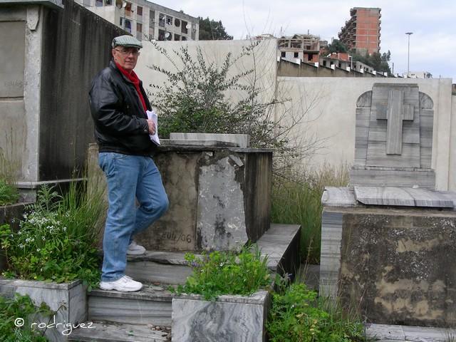 Je prends un peu de terre. J'y enterre une photo de mes parents, et je parle et je parle avec eux. Mon ami, Aicha et Mohamed ont tout comprit et se retirent un peu. Le temps de cet instant dans le temps, oui je vous le promet en 2011 je reviens et je ferai faire un marbre sur lequel sera gravé "à mes frères Charley 1 et 2 nous ne vous oublions pas. Vos frères, soeur et parents" et je pleure, alors je prends avec ma main mes larmes et je frotte sur la tombe ma main mouillée, voilà mes frères vous ne dormirez plus seuls. Tant de choses défilent en cet instant, .... Mon ami me dit "t'en fais pas on se débrouillera du ciment et on fera cela très bien". Aller Gégé faut partir, ah je regarde autour de moi, tous ces morts allongés là dans le silence c'est en même temps petit et en même temps grandiose, ils ont fait l'Algérie, je regarde les noms. Non vous n'êtes pas rien. Vous êtes ma race. Celle des pieds noirs d'Algérie, et j'entends bien vos rires vos larmes. Vous avez aimé. Vous avez souffert, j'entends vos "diocane à la madone", vos, "va va va", vos "aller va j't'en donne une aregarde si tu me laisse pas tranquille" tout notre langage haut en couleur, mélange de français, d'italien, d'espagnol et d'arabe, etc etc, qui donnait un langage coloré, nos exagérations, mais tout est bon enfant, ah oui mais je le sens personne n'est vraiment mort ici. Vous êtes bien vivant, chanceux vous vivez dans ce beau pays. Notre pays, l'Algérie! Je redescends l'allée du reposoir vers la sortie. Je me retourne souvent il y a tant de vies. Oui je dis bien tant de vies ici combien de larmes lors des enterrements sont passées par cette porte de fer, ainsi est la vie. Aller faut encore partir.