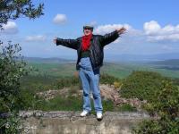Et puis un autre gros morceau m'attend aujourd'hui mercredi. Cela fait 48 ans que je pense à Sididjemil. Le terrain de chasse de mon papa et moi. Ce matin c'est le grand jour, vais-je trouver mes montagnes mythiques? Vais-je trouver la SAS? Les sections Administratives Spécialisées (SAS) étaient chargées de "pacifier" les secteurs, ancien camp militaire, toutes ces questions! J'embarque dans le taxi, qui doit me conduire. Voilà la corniche qui s'étire, le port, la gare des trains et la route de Duzerville, puis Mondovi, je vois la première pancarte "Sididjemil" quel bonheur, ce nom résonne en moi comme liberté, combien de fois à l'école Beausèjour, je n'écoutais plus le prof, la tête dans les nuages en pensant au dimanche qui arrivait et aux sangliers de Sididjemil, aux montagnes, aux cris des traqueurs, aux coups de fusils, voilà mais 48 ans ont passés. Vais-je retrouver mon Sididjemil, il me semble reconnaître la route, mais non, nous nous sommes trompé, demi tour et encore demi tour. Nous cherchons, nous demandons, je commence à désespérer et puis de braves gens nous disent. "Oui oui la SAS existe toujours, allez par là, à environ 20 Km" mais dès que nous attaquons la route je ne vois que des constructions de maisons dans le bled alors que tout était désert en 1960. Je comprends ça peut changer. Mais bon!! Je dis à mon papa "papa aide moi à trouver" et puis d'un seul coup toutes habitations cessent, nous attaquons une côte dans un paysage sauvage, mi-montagne mi-vallée oui je me dis si ça monte c'est par là, car il fallait monter une petite route pour accéder à la SAS, oui ouiiiiiiiiiii je reconnais la route, et puis comme pour me le certifier deux sangliers nous passent devant et traversent, merde je n'ai pas mon appareil photo. Mais quel bonheur!!! Je savais que pour arriver à la SAS il fallait en haut de la côte tourner à droite sur une route de terre et passer aux milieux de gourbis. À l'époque les gens se mettaient là pour être protégés des fellaghas. Alors je cherche quelques traces. Mais rien aucun gourbi, juste une nature sauvage. Je vois bien sur ma droite en haut de la colline des ruines, des murs, mais est-ce Sididjemil, la SAS? Alors nous demandons à des bergers, qui nous affirment que oui! Je suis anéanti. Est-ce qui reste de mon Sididjemil. Le coeur me bat à tout rompre, je décide avec mon ami algérien de grimper la colline vers ces ruines. Mais catastrophe, il a plut durant la nuit, et le sol de glaise nous met des paquets de boue aux souliers, souliers!!! Parlons en!! Des tennis!! Voilà ce que nous avions aux pieds. Alors nous marchons il fait chaud, le coeur me bat à tout rompre, l'émotion, je pense à mon papa, car c'est pour lui que je suis là, tout ici parle de lui, c'est son territoire dont il parla jusqu'à sa mort. Je me décourage, ça à pas de bons sens, mes baskets sont dans un état pas possible, je veux abandonner, je dis à mon ami "écoute on peut pas continuer, regardes cette merde aux pieds", je suis découragé, fatigué, la chaleur, les émotions mes soixante ans, bref. Je veux retourner sur la route, c'est la défaite, je n'approcherai pas la SAS de Sididjemil (ou à cause des fellaghas nous étions tenu de nous signaler car sinon aux coups de fusils les militaires auraient rappliqués pensant que c'était des fellouss). Je me retourne pour faire demi tour et mon ami algérien me sauve la vie, oui la vie car 48 ans que je pense à Sididjemil et voilà que je me décourage pour de la boue. Il me dit "écoutes on y est presque, ça fait 48 ans que tu penses, que tu pleures, que tu parles de Sididjemil, que tu ne vis que par Sididjemil, tu as fais une promesse à ton père de revoir pour lui ses montagnes, si tu fais demi tour maintenant tu ne te le pardonnera pas, laisses, les baskets sont pourris, nos pantalons plein de boues, donnes moi la camera et on y va, ne retournes pas en arrière tu ne pourras vivre avec ça, il y a trop longtemps que tu attends", mais je lui dis: "je suis crevé, fatigué", les émotions se bousculent, j'ai le coeur qui va me sauter. Il me dit "Prends courage, regardes Sididjemil est là à 300 mètres, aller on y va!" Ah merci mon ami, tu viens de me sauver et je recommence à monter la colline. Quelle chaleur, la boue qui me colle aux souliers, j'ai le coeur qui contrôle plus rien, je regarde à droite, à gauche, ouiiiiiiiiii c'est bien mes montagnes.
