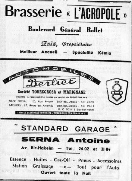 Sidi Bel-Abbes-Pub 1960-Brasserie Acropole/Sté Berliet/Garage Serna