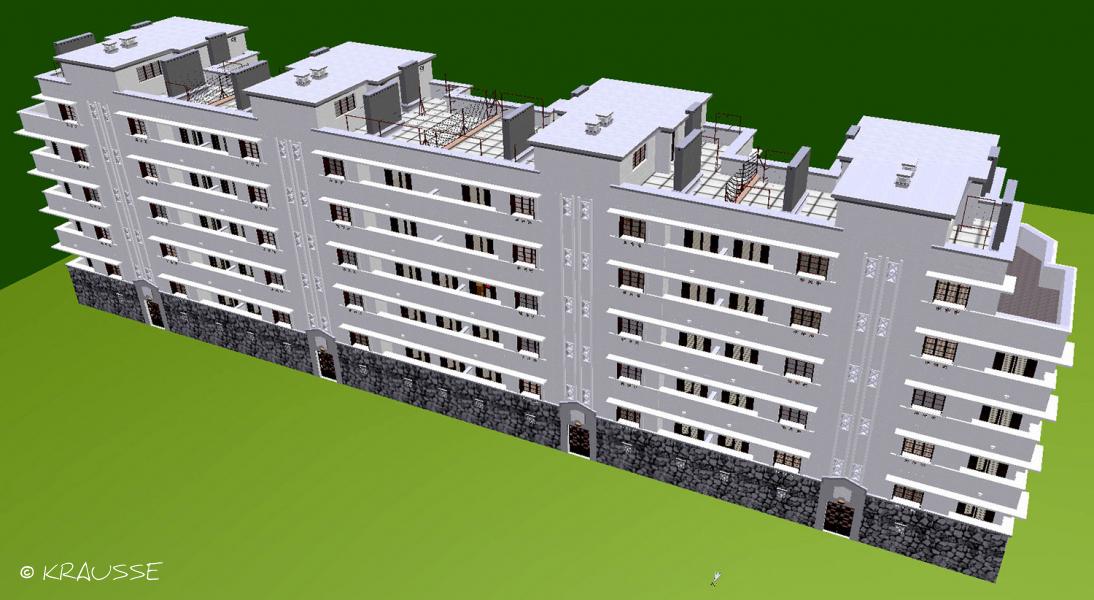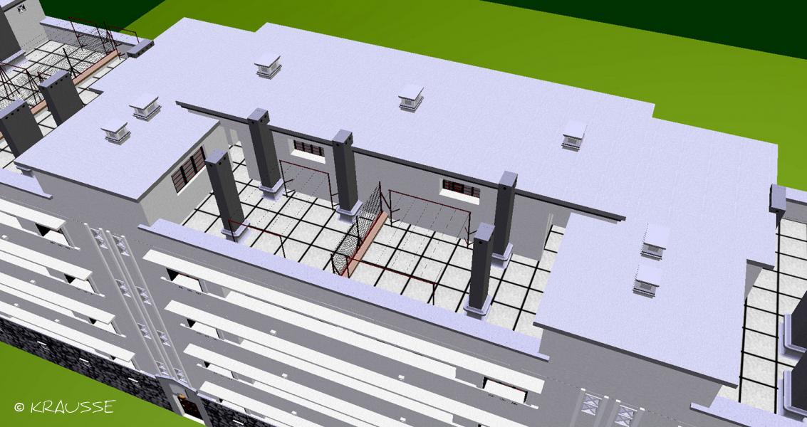 Architecte 3D - Gendarmerie Sidi bel Abbes - Batiment de la locale vue plongeante avant