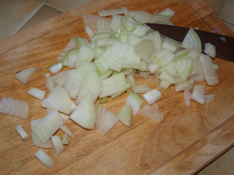 Si nécessaire, découpez la viande, coupez en lamelle l’oignon, hachez la coriandre au mortier.