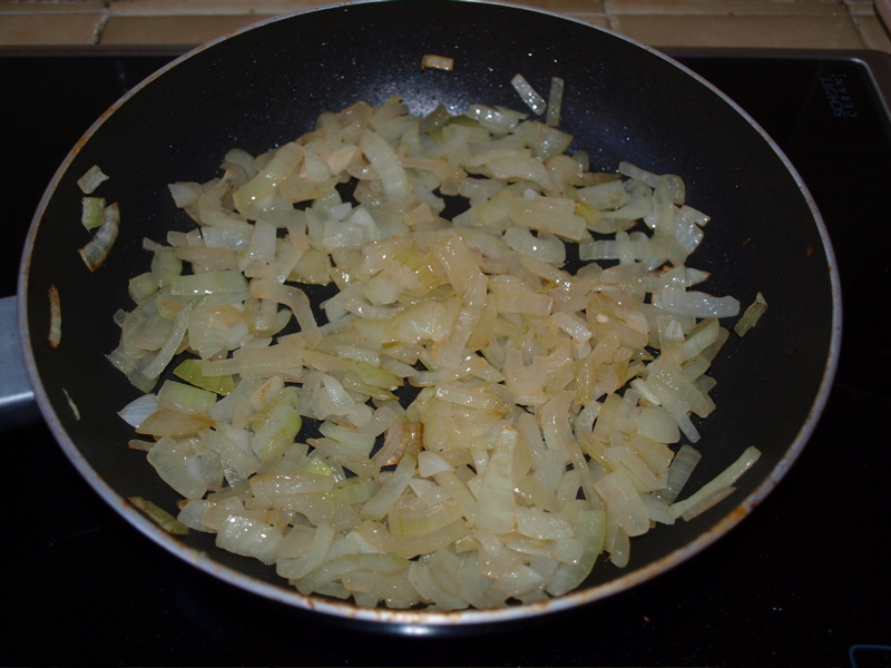 Dans une poêle, faire revenir la viande que vous réserverez et faire fondre l’oignon. Battre les oeufs avec l’assaisonnement. Faite cuire la viande avec les oeufs et l'oignon en remuant.
