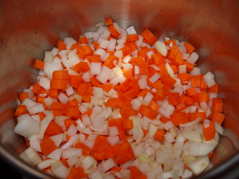 Faire revenir les dès de légumes dans un peu d'huile d'olive.